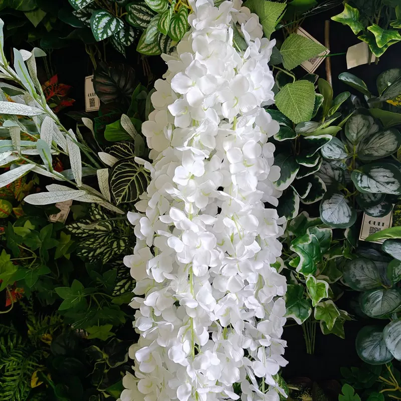 Bu süni wisteria çiçəkləri çələng 180 sm uzunluğundadır, əlavə uzun bir üslubdur. Cütlükdə istifadə olunarsa, bir otağın bütün hündürlüyünü əhatə edə bilər.